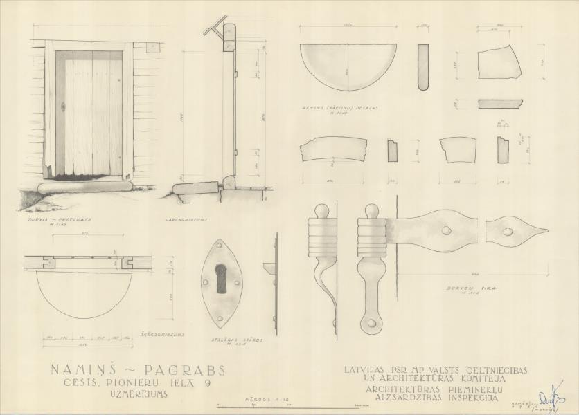 Namiņš - pagrabs. Durvis, atslēgas skārds, durvju vira, akmens detaļas (Cēsu novads, Cēsis. Mazā Katrīnas iela 9.)