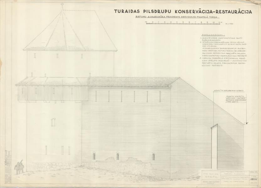 Turaidas pilskalns un viduslaiku pils. Rietumu aizsargmūra fragments dienvidos no pusapaļā torņa (Siguldas novads, Sigulda. Turaidas iela 10.)