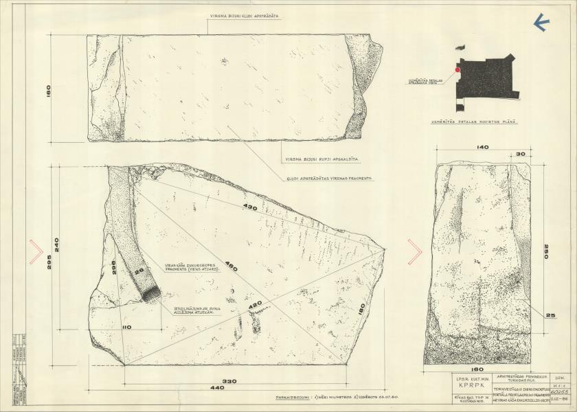 Turaidas pilskalns un viduslaiku pils. Torņveidīgais dienvidu korpuss, portāla profilakments fragments (Siguldas novads, Sigulda. Turaidas iela 10.)