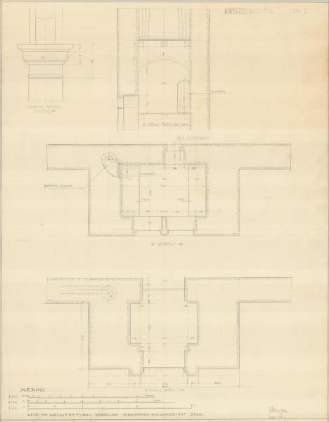 Burtnieku luterāņu baznīca. Tornis, pirmais un otrais stāvs, galerijas kolonas kapitelis (Burtnieku novads, Burtnieku pagasts. Burtnieki.)