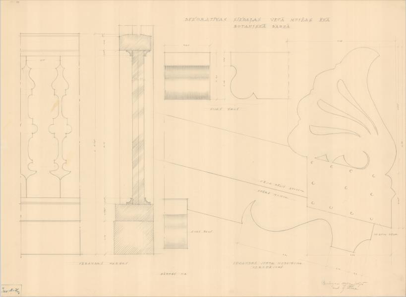 Volfšmita muižiņas apbūve. Bijusī kalpu māja, veranda, dekoratīvas detaļas, margas, jumta nobeiguma izrotājums, sijas gals, vēja dēlis, spāre ( Rīga. Kandavas iela 2.)