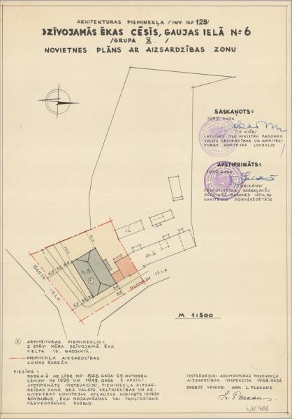 Dzīvojamā ēka. Novietnes plāns ar aizsardzības zonu (Cēsu novads, Cēsis. Gaujas iela 6.)