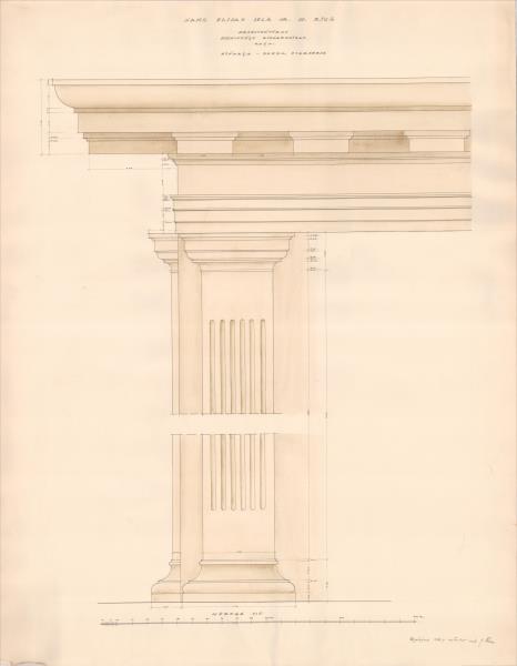 Ēka. detaļa, dzega, pilastrs ( Rīga. Elijas iela 17.)