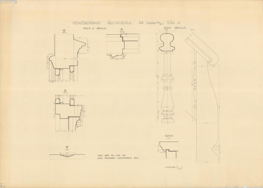 Hartmaņa muižiņas ansamblis. Ēka "A". Durvju detaļas, kāpņu detaļas, kāpiens ( Rīga. Kalnciema iela 28.)