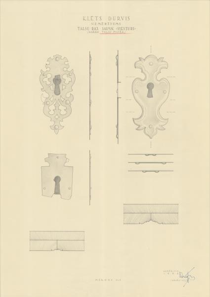 Bijušās Talsu muižas apbūve. Klēts durvis, detaļas (Talsu novads, Ģibuļu pagasts. Pastende. Viesturi.)