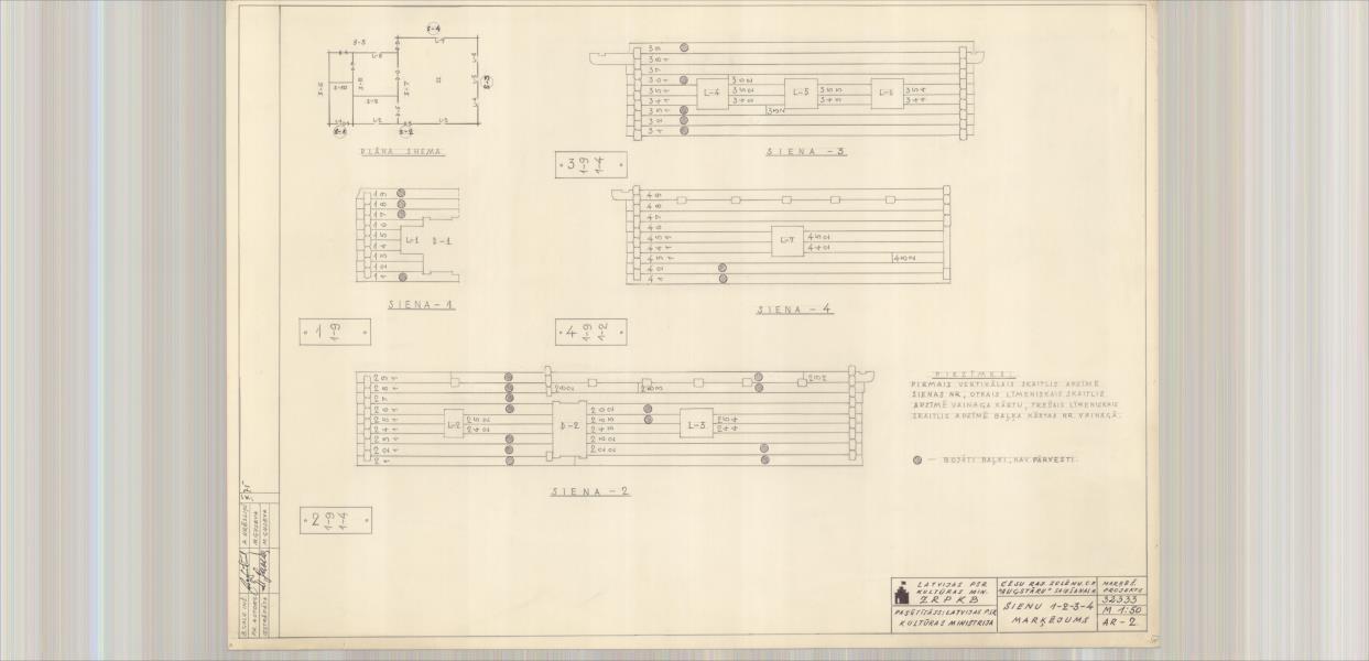 Augstāru saiešanas nams. Sienu marķējums (Jaunpiebalgas novads, Zosēnu pagasts. Augstāri.)