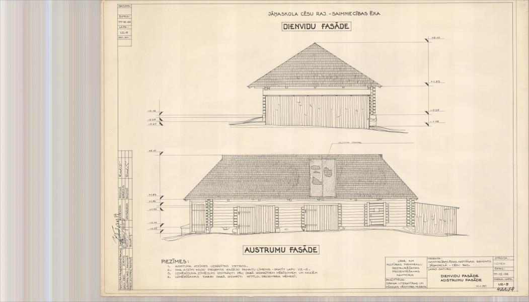 Komponista E.Dārziņa dzimtās mājas, Jaunpiebalgas pagastskola. Saimniecības ēka. Austrumu, dienvidu fasādes (Jaunpiebalgas novads, Jaunpiebalgas pagasts. Jāņa skola.)