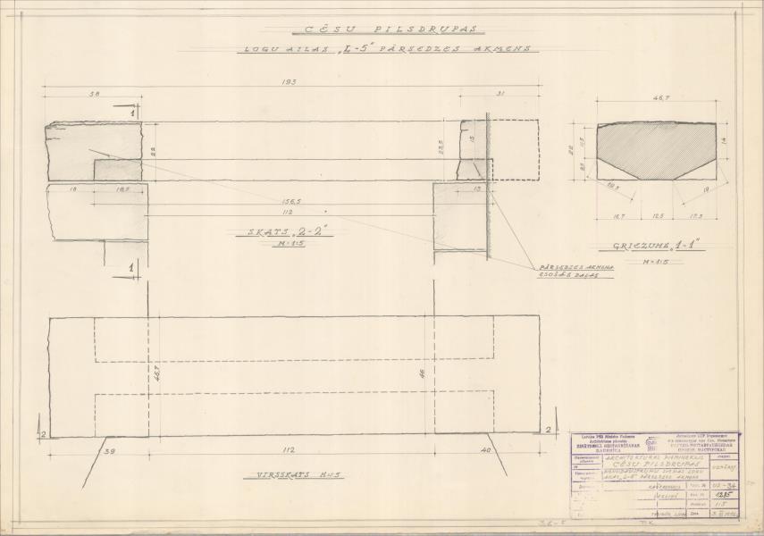 Cēsu viduslaiku pils drupas. Dienvidaustrumu sienas logu ailes "L-5" pārsedzes akmens (Cēsu novads, Cēsis. Pils laukums 11.)