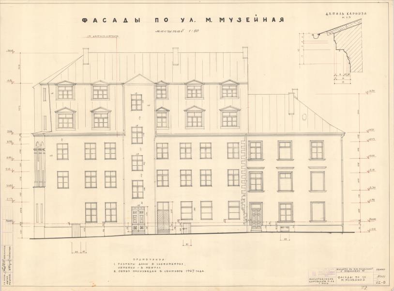 Dzīvojamā ēka. Fasāde ( Rīga. Miesnieku iela; Mazā Muzeja iela 10; 1.)