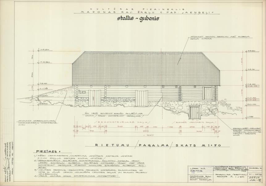 Mūzikas darbinieku brāļu Jurjānu dzimtās mājas. Stallis-gubenis. Pagalma (rietumu) skats (Ērgļu novads, Ērgļu pagasts. Meņģeļi.)