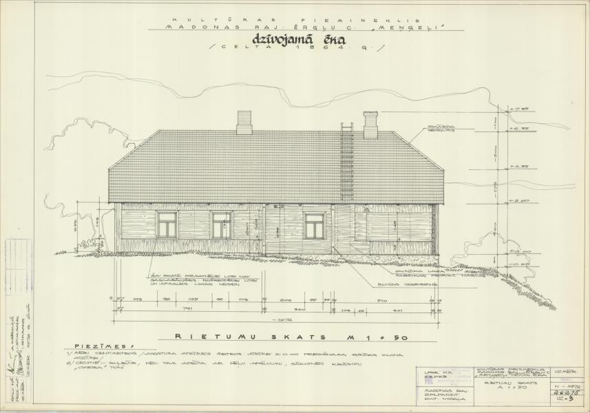 Mūzikas darbinieku brāļu Jurjānu dzimtās mājas. Dzīvojamā ēka. Rietumu skats (Ērgļu novads, Ērgļu pagasts. Meņģeļi.)