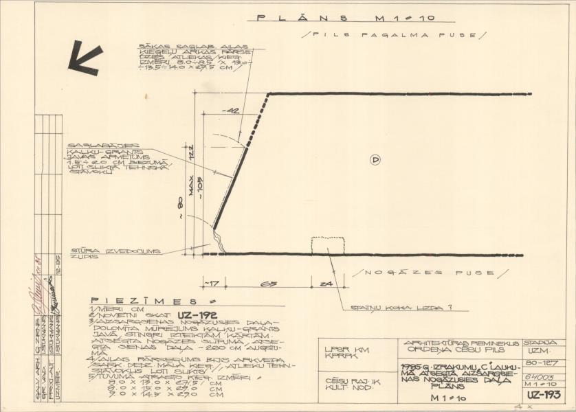 Cēsu viduslaiku pils drupas. 1985.g. izrakumu "C"laukumā atsegtā aizsargsienas nogāzusies daļa (Cēsu novads, Cēsis. Pils laukums 11.)