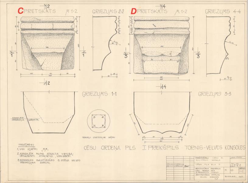 Cēsu viduslaiku pils drupas. Tornis, detaļas, velvju konsoles (Cēsu novads, Cēsis. Pils laukums 11.)