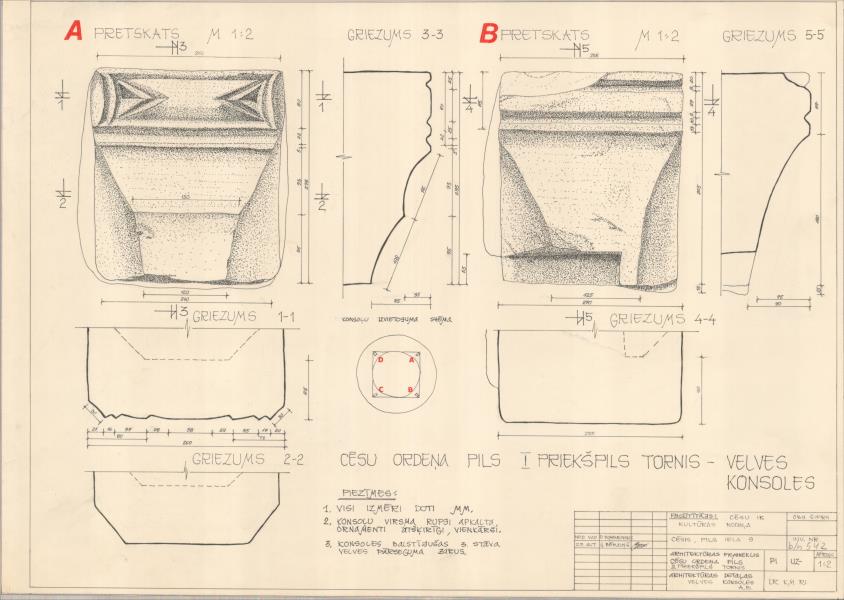 Cēsu viduslaiku pils drupas. Tornis, detaļas, velvju konsoles (Cēsu novads, Cēsis. Pils laukums 11.)