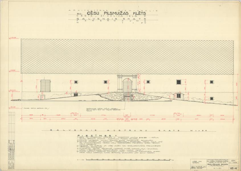 Cēsu pilsmuižas klēts. Galvenais (austrumu) skats (Cēsu novads, Cēsis. Pils laukums 15.)
