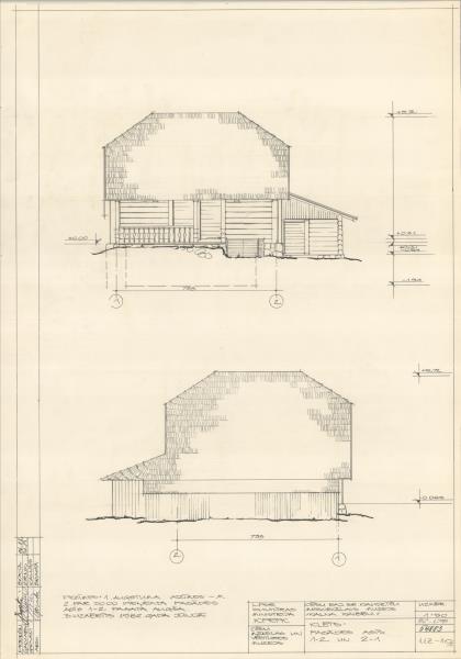 Rakstnieku R. un M.Kaudzīšu dzīves un darba vieta. Klēts. Fasāde asīs (Vecpiebalgas novads, Vecpiebalgas pagasts. Kalna Kaibēni.)