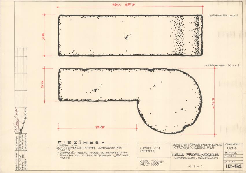 Cēsu viduslaiku pils drupas. Māla profilķieģelis (Cēsu novads, Cēsis. Pils laukums 11.)