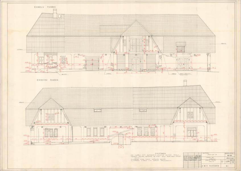 Ķibiržu muižas stallis. Ziemeļu un Dienvidu fasādes (Limbažu novads, Viļķenes pagasts. Ķibirži. Ķirbižu muiža.)