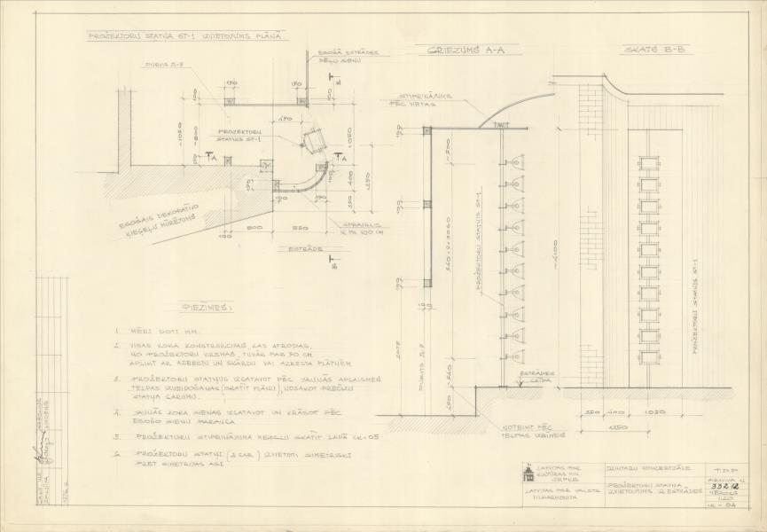 Dzintaru koncertzāle. Prožektora statņa izvietojums uz estrādes ( Jūrmala. Turaidas iela 1.)