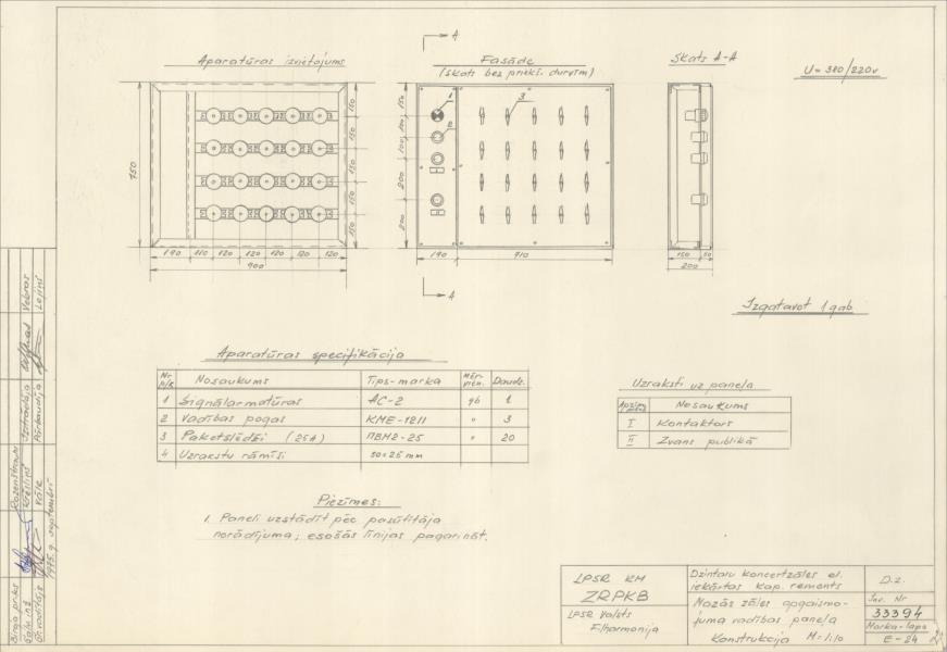 Dzintaru koncertzāle. Mazās zāles apgaismojuma vadības paneļa konstrukcija ( Jūrmala. Turaidas iela 1.)