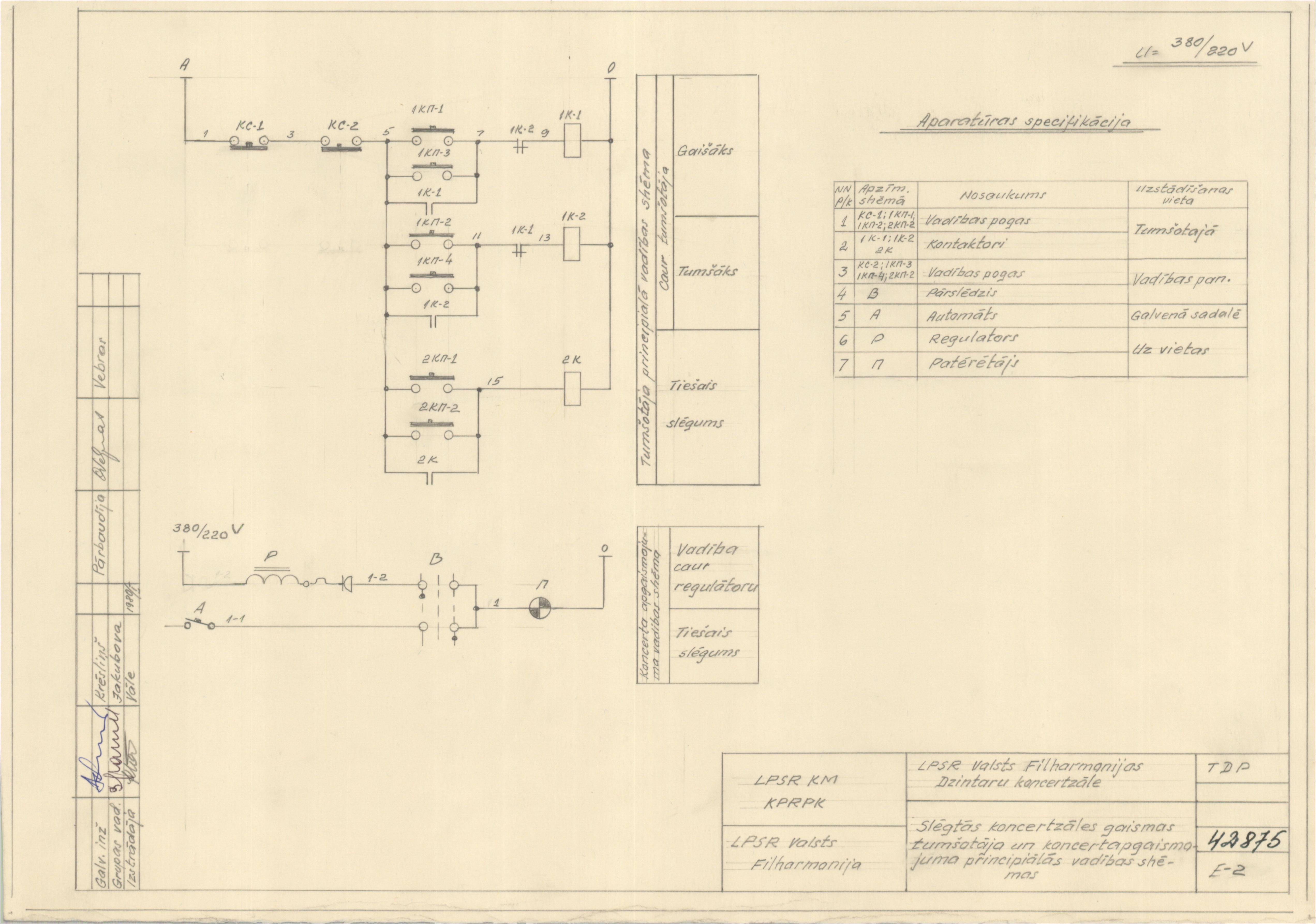 Dzintaru koncertzāle. Slēgtās koncertzāles gaismas tumšotāja un koncertapgaismojuma principiālās vadības shēmas ( Jūrmala. Turaidas iela 1.)