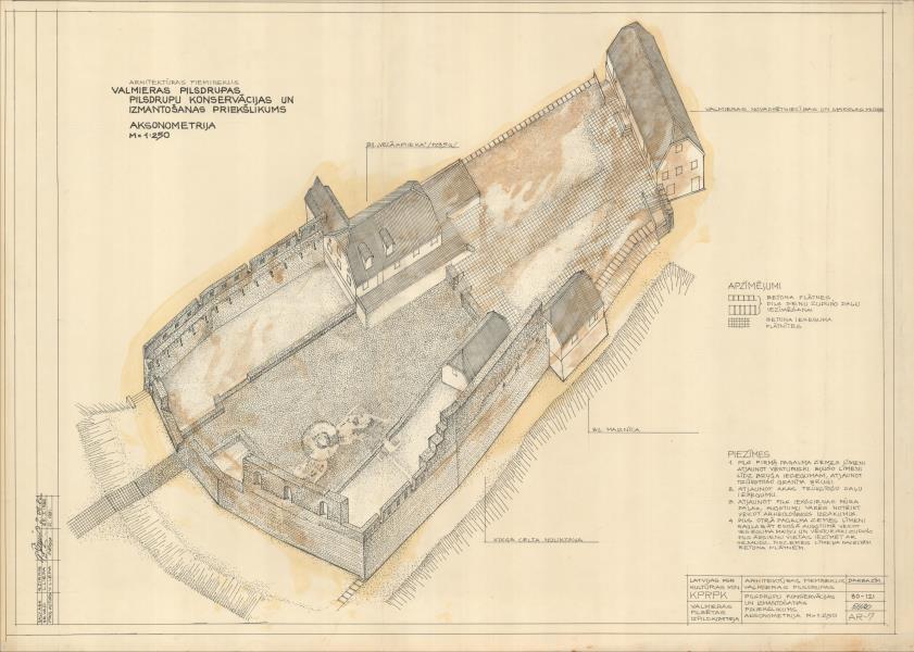 Valmieras pilsdrupas un pilsētas viduslaiku nocietinājumi. Aksonometrija ( Valmiera. Bruņinieku iela 1.)