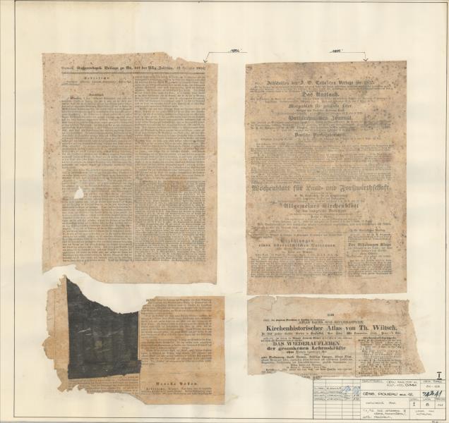 Dzīvojamā ēka. T1/T2 S12 apdares I kārta (pamatkārta). Avīžu fragmenti (Cēsu novads, Cēsis. Mazā Katrīnas iela 12.)