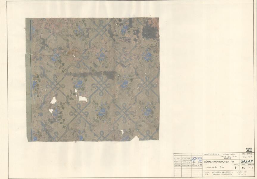 Dzīvojamā ēka. T1/T2 apdares VII kārta. S12 tapetes fragments (Cēsu novads, Cēsis. Mazā Katrīnas iela 12.)