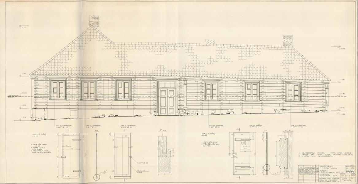 Dzīvojamā ēka. Fasāde pret Mazo Katrīnas ielu (ar apšuvumu). Slēģi logiem L-2 un L-14 (Cēsu novads, Cēsis. Mazā Katrīnas iela 12.)