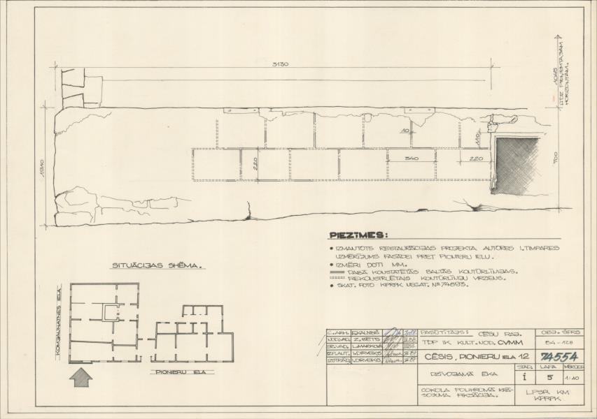 Dzīvojamā ēka. Cokola polihromā krāsojuma fiksācija, situācijas shēma (Cēsu novads, Cēsis. Mazā Katrīnas iela 12.)