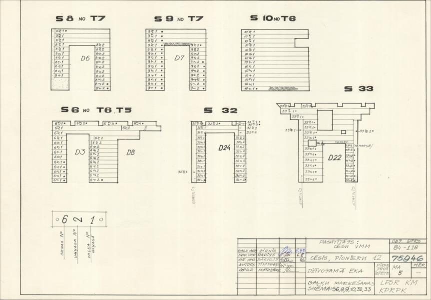 Dzīvojamā ēka. Baļķu marķēšanas shēma S6, 8, 9, 10, 32, 33 (Cēsu novads, Cēsis. Mazā Katrīnas iela 12.)