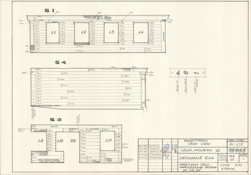 Dzīvojamā ēka. Apšuvuma dēļu marķēšanas shēma S1, S3, S4 (Cēsu novads, Cēsis. Mazā Katrīnas iela 12.)