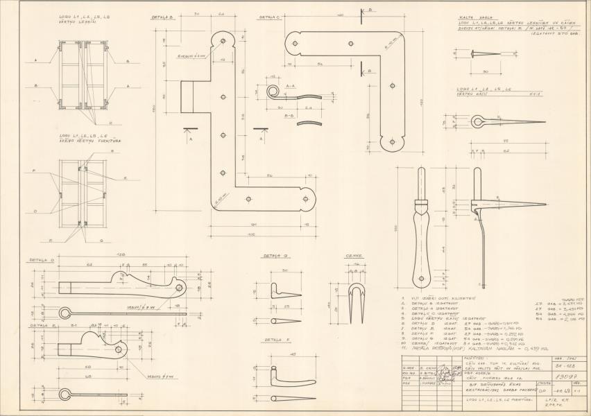 Dzīvojamā ēka. Logu L-1, L-2, L-5, L-6 furitūra, detaļas (Cēsu novads, Cēsis. Mazā Katrīnas iela 12.)