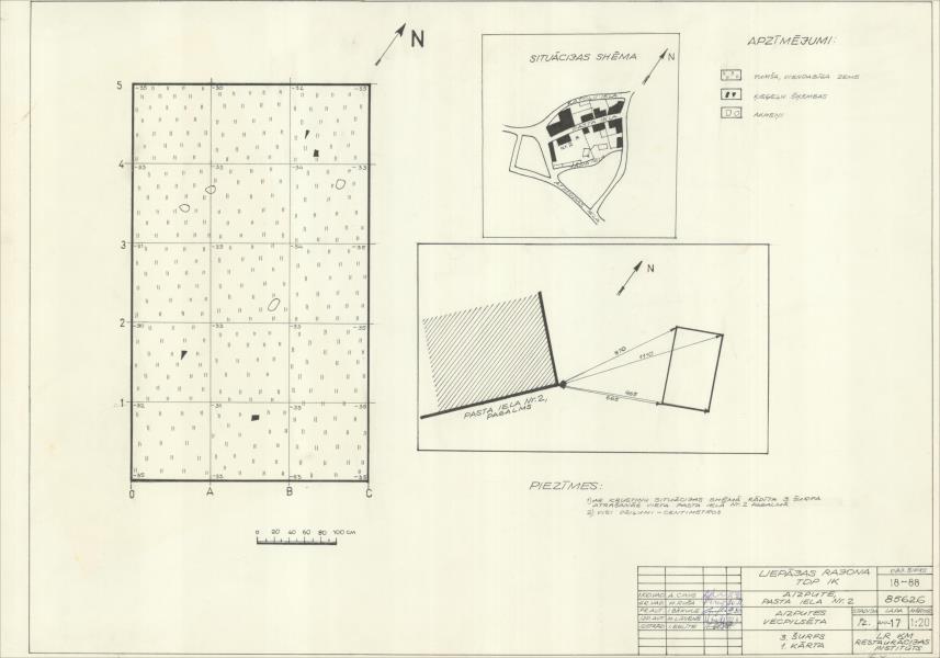 Aizputes vecpilsēta. 3. šurfs, 1. kārta, situācijas shēma (Aizputes novads, Aizpute. Pasta iela 2.)
