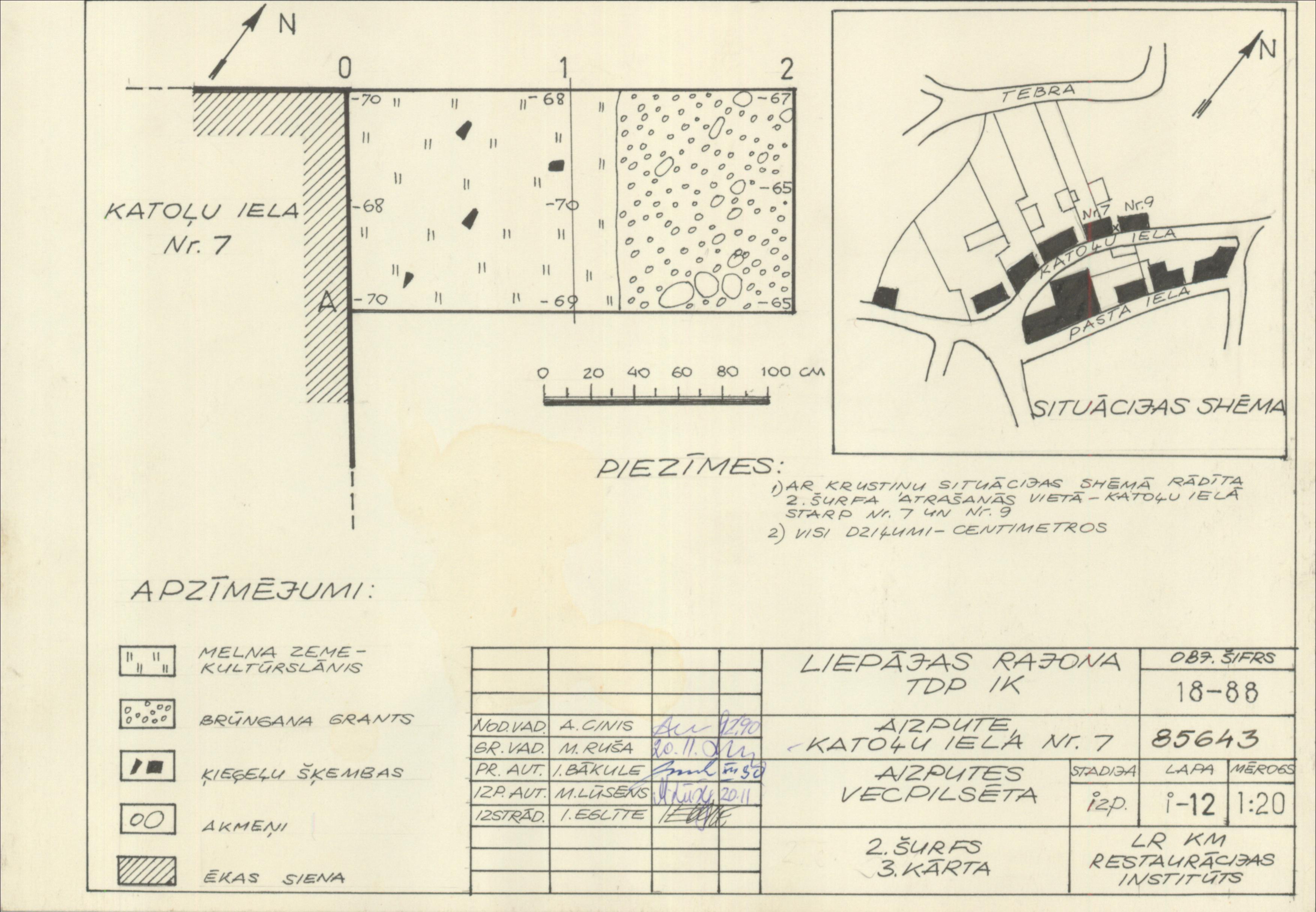 Aizputes vecpilsēta. 2. šurfs, 3. kārta, situācijas shēma (Aizputes novads, Aizpute. Katoļu iela 7.)