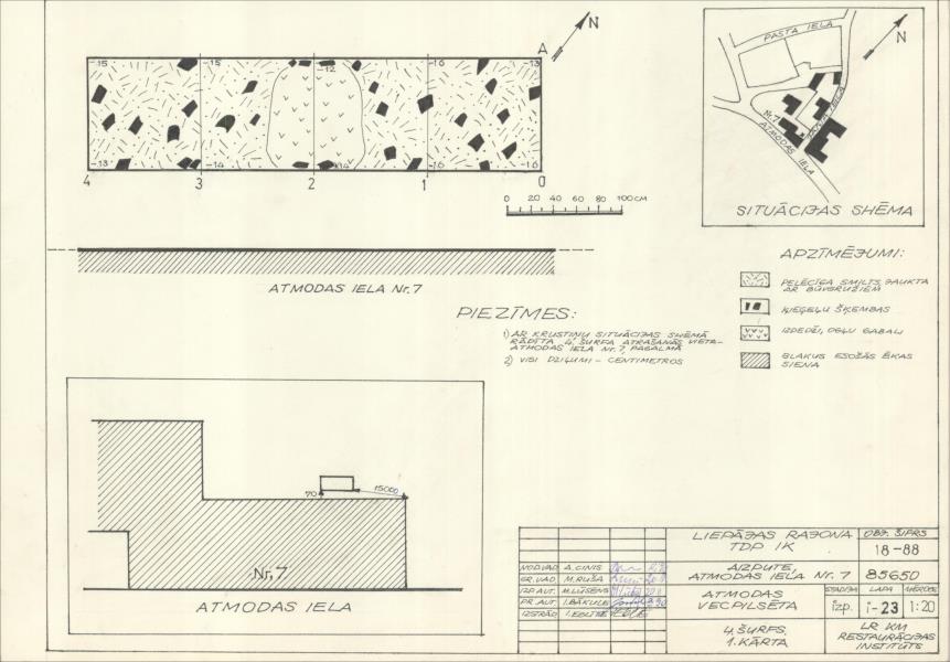 Tumšo krogs. 4. šurfs, 1. kārta, situācijas shēma (Aizputes novads, Aizpute. Atmodas iela 7.)