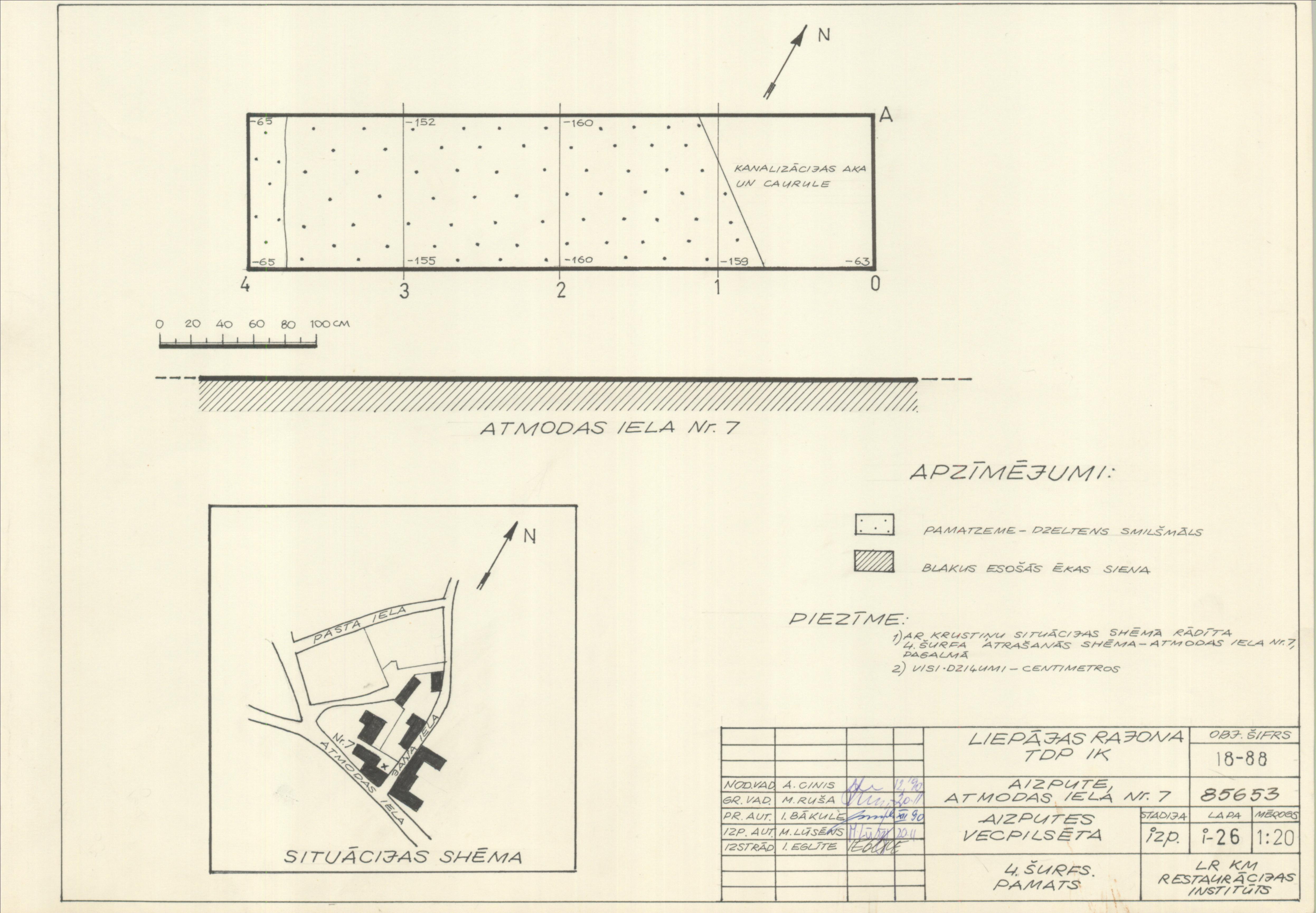 Tumšo krogs. 4. šurfs, pamats, situācijas shēma (Aizputes novads, Aizpute. Atmodas iela 7.)