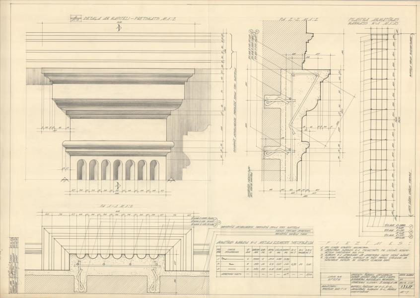 Kapiteļi, šķēlumi, armatūras karkass, metāla specifikācija