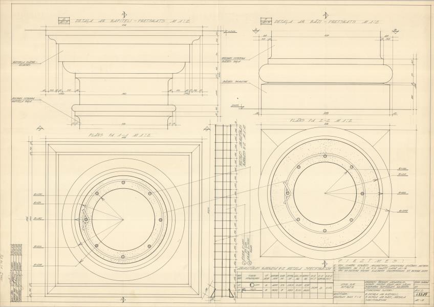 Lielīvandes muižas apbūve. Jaunā dzīvojamā ēka, aktu zāle, detaļa ar kapiteli, detaļa ar bāzi (Kuldīgas novads, Īvandes pagasts. Īvande. Skolas nams.)