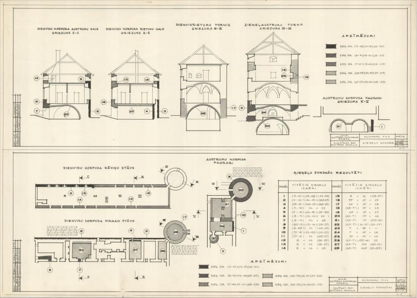 Alsungas pils. Ķieģeļu zondāžas, torņi, A korpusa pagrabi, D koprusa bēniņi, pirmais stāvs (Alsungas novads, . Alsunga.)