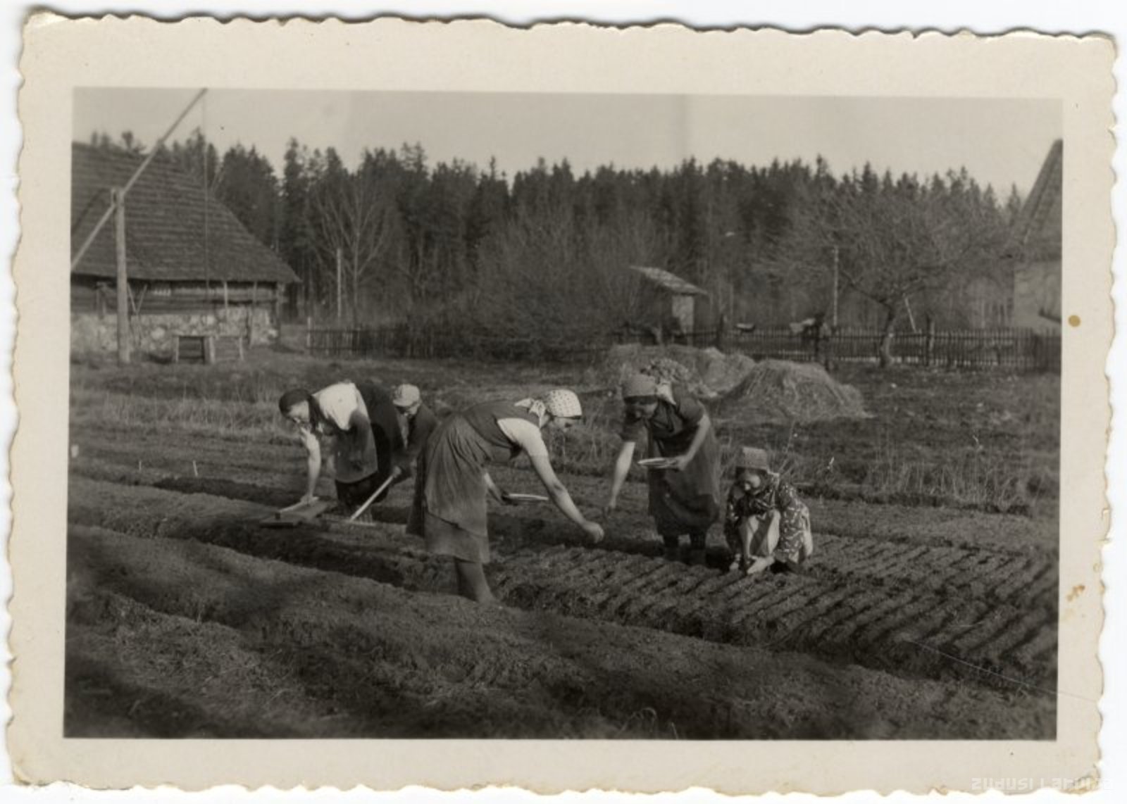 Kauguri. Lauku sievietes apsēj dārzu