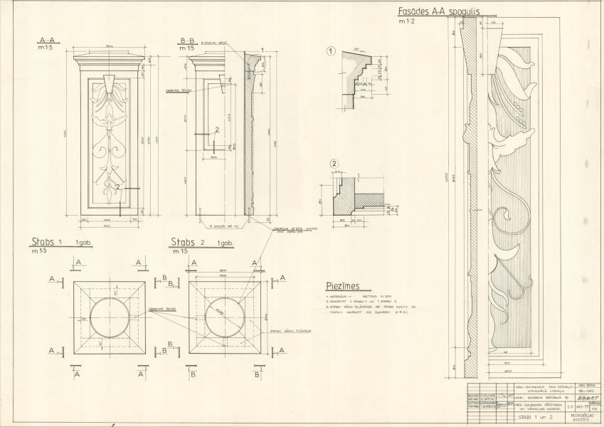 Baltā pils, Vecgulbenes muižā. Stabi 1 un 2, fasādes spogulis (Gulbenes novads, Gulbene. Brīvības iela 12.)