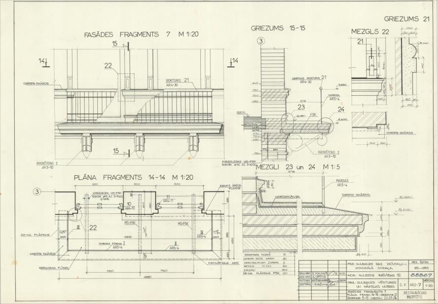 Baltā pils, Vecgulbenes muižā. Fasādes fragments, plāna fragments (Gulbenes novads, Gulbene. Brīvības iela 12.)