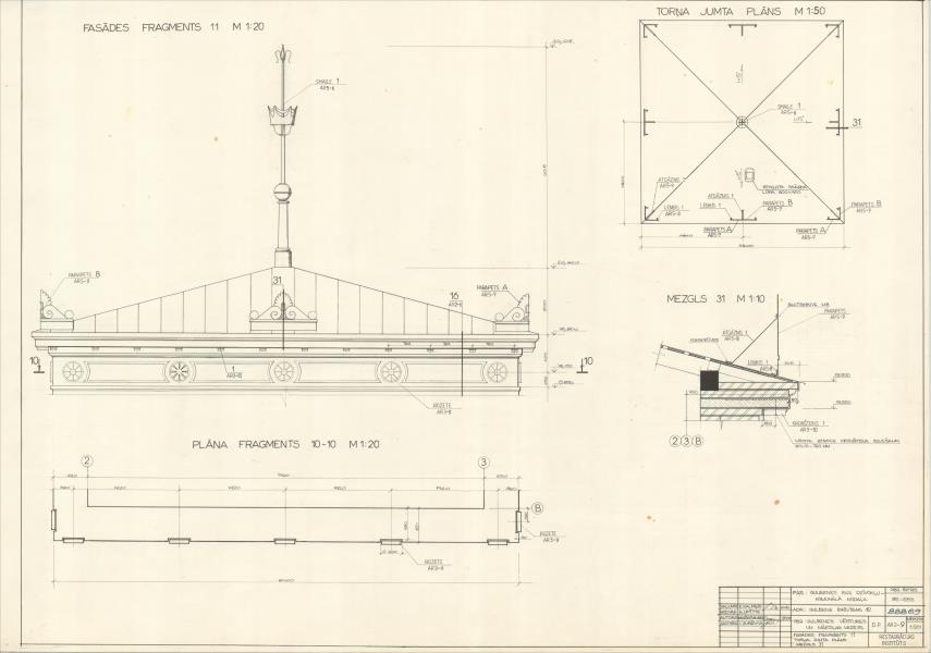 Baltā pils, Vecgulbenes muižā. Fasādes fragments, torņa jumta plāns (Gulbenes novads, Gulbene. Brīvības iela 12.)