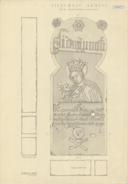 Piedurvju akmens agrāk Rīgas Svētā Franciska baznīcas kapsētā ( Rīga. Mazā Pils iela 17.)