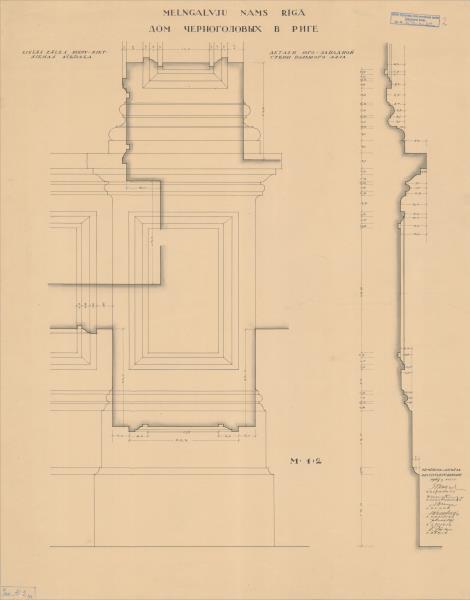 Melngalvju nams. Lielās zāles dienvidu-rietumu sienas detaļa ( Rīga. Rātslaukums 7.)