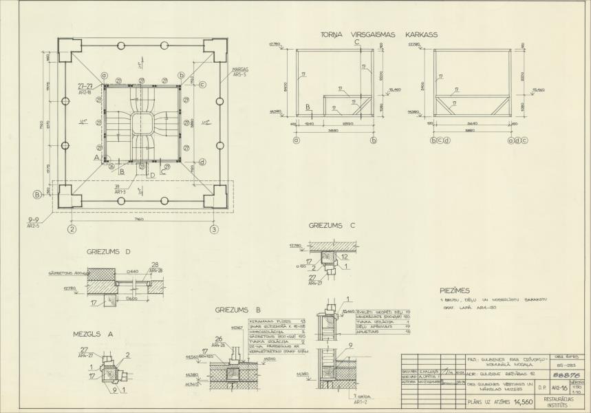 Baltā pils, Vecgulbenes muižā. Plāns uz atzīmes 14,560, torņa virsgaismas karkass (Gulbenes novads, Gulbene. Brīvības iela 12.)