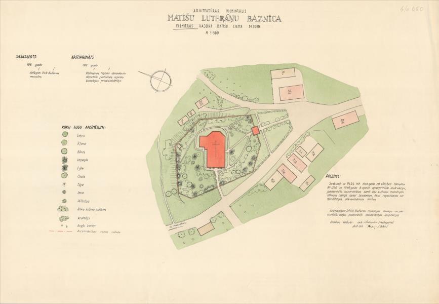 Matīšu luterāņu baznīca. Novietnes plāns ar aizsardzības zonu (Burtnieku novads, Matīšu pagasts. Matīši. Valmieras iela 3.)