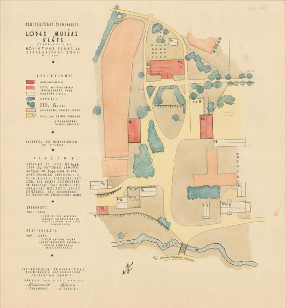Lodes muižas apbūve. Novietnes plāns ar aizsardzības zonu (Vecpiebalgas novads, Taurenes pagasts. Lodes Muiža.)