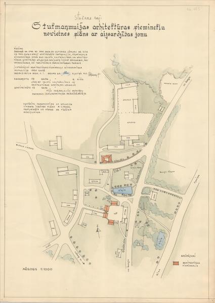 Stukmaņu muižas apbūve. Novietnes plāns ar aizsardzības zonu (Pļaviņu novads, Klintaines pagasts. Stukmaņi. Stukmaņu muiža.)